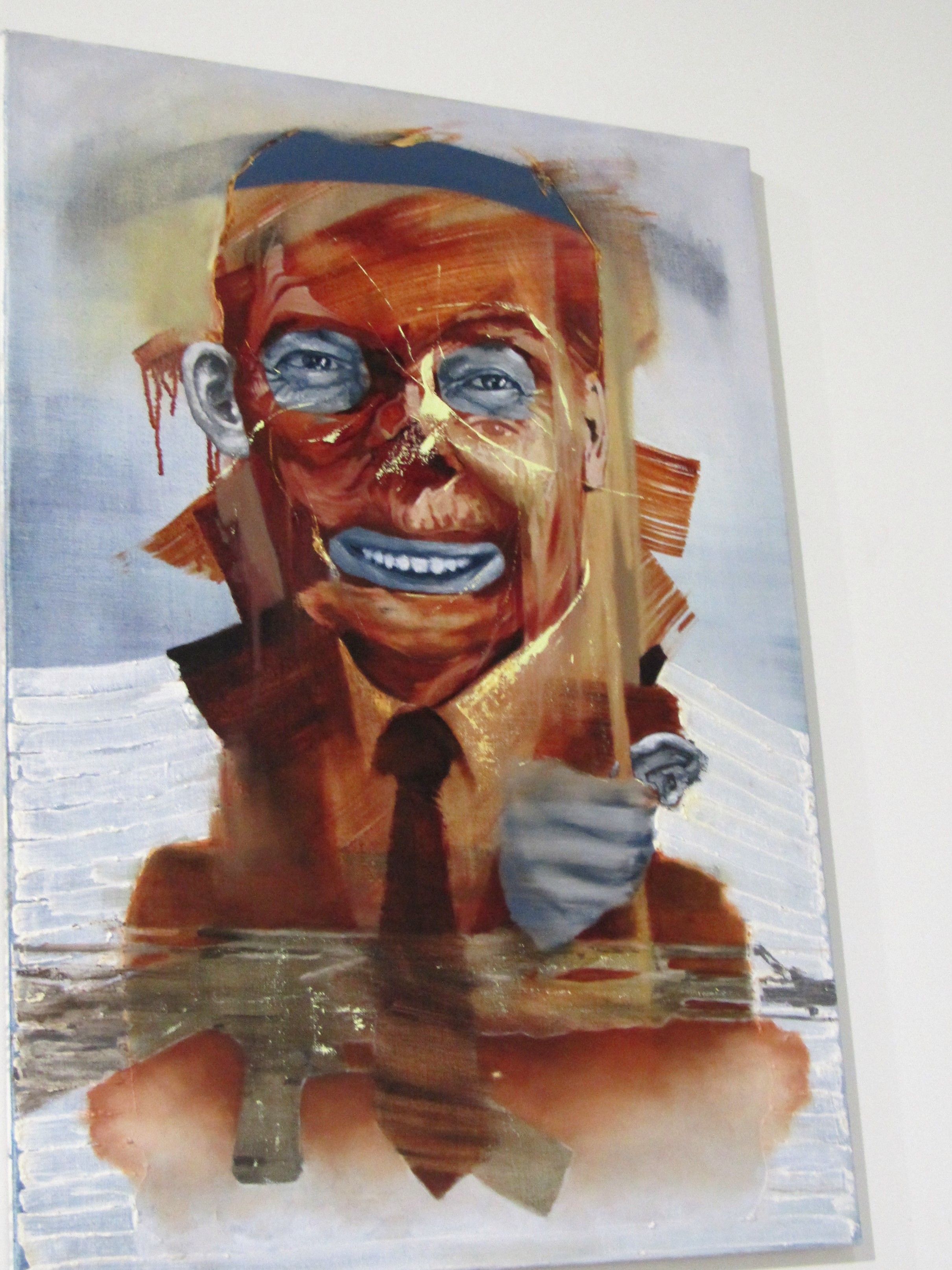 Kuvataideakatemian joulumyyjäisistä 2018 jäi mieleen Sakari Vinkan työ, joka näyttää ensin joltain aivan muulta. Pohjalla on kuitenkin näyttelijä/ presidentti Ronald Reaganin kasvot.