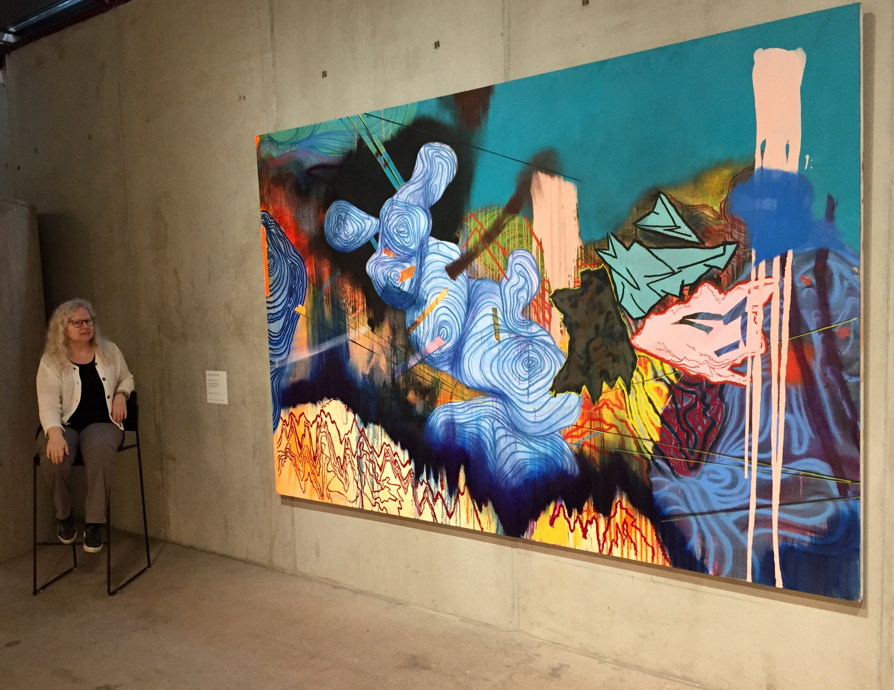 Teokset olivat energisiä, värikkäitä ja leikillisiä. Katsottavaa riitti. Osassa oli ideaa, kritiikkiä tai huumoria, osa oli nopeasti tehtyjä tuherruksia. Osa töistä oli syntynyt spontaanisti Emmalle. Mukana oli myös ryhmän yhteistyönä tekemiä installaatioita: