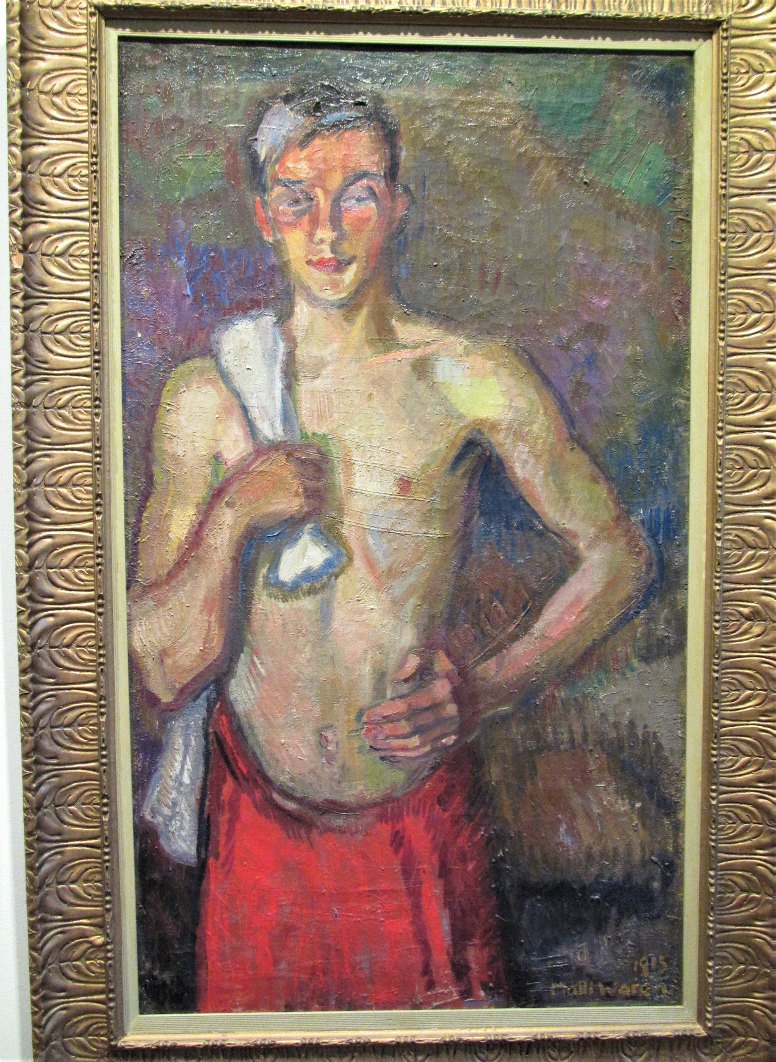 Kirpilä mies ylävartalo paljaana punainen pyyhe